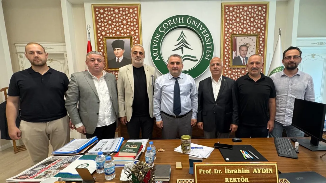 Artvin Ticaret Borsası Başkanı Osman Akyürek, Artvin Çoruh Üniversitesi Rektörü Prof. Dr. İbrahim Aydın’ı ziyaret ederek, borsa-üniversite iş birliğinin kent ekonomisine katkısını vurguladı.Bayram SARAYOĞLU / ARTVİN (İGFA) - Artvin Ticaret Borsası Yönetim Kurulu Başkanı Osman Akyürek ve yönetim kurulu üyeleri, Artvin Çoruh Üniversitesi Rektörü Prof. Dr. İbrahim Aydın’ı makamında ziyaret etti. Yönetim Kurulu Üyeleri Yener Balkaya, Hakan Ermiş, Uğur Turan ve Şenol Şahin Çelebi'nin de hazır bulunduğu ziyarette, borsa ile üniversite arasındaki iş birliğinin Artvin’in sosyal ve ekonomik gelişimine katkısı ele alındı.