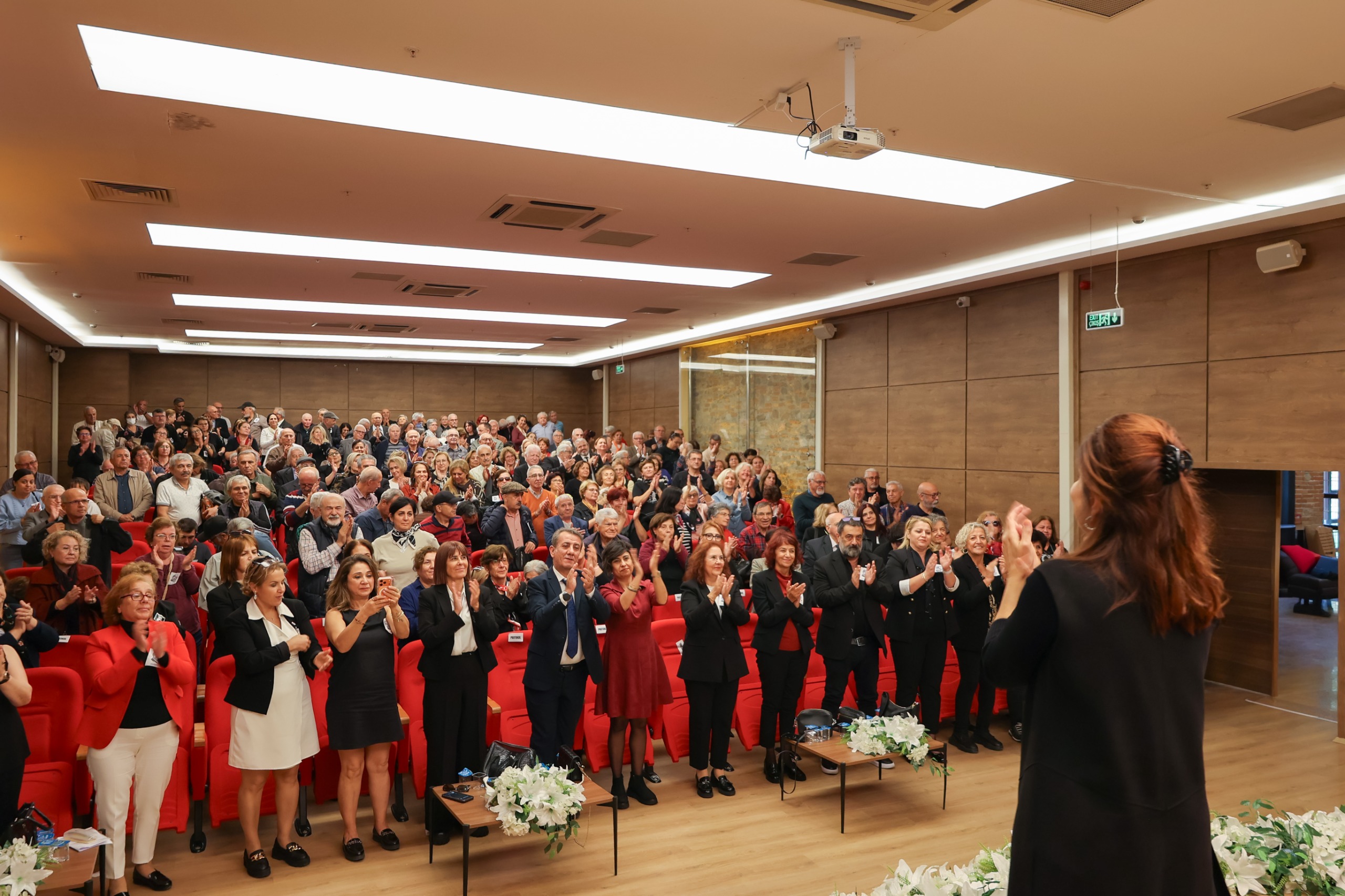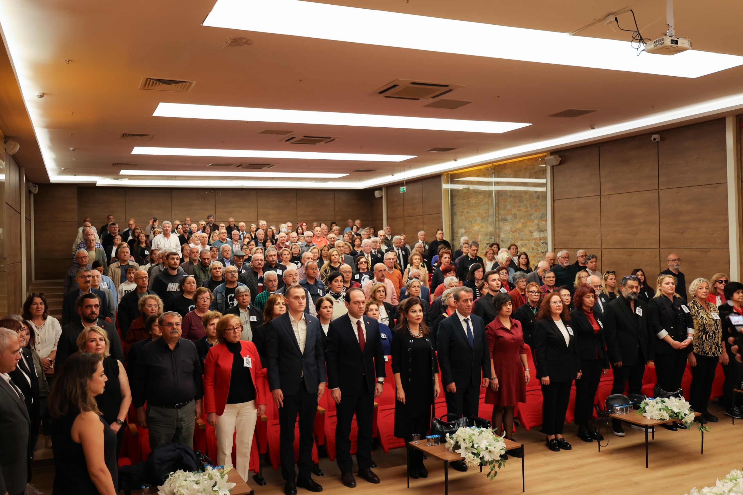 Salonu dolduran yüzlerce vatandaşın katılımıyla gerçekleşen program, Atatürk'ün anısına saygı duruşu ve İstiklal Marşı'nın okunmasıyla başladı.