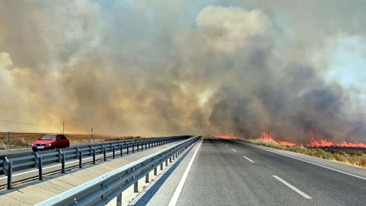 Edirne'de buğday ve ayçiçeği tarlalarının bulunduğu alanda anız yangını çıktı. Alevler rüzgarın etkisi ile büyürken, dumanın kapladığı Edirne-Havsa kara yolu ulaşıma kapatıldı.