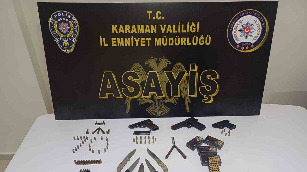 Karaman’da polisin yaptığı asayiş uygulamalarında uyuşturucu ve ruhsatsız silahlar ele geçirilirken, çeşitli suçlardan aranan 10 şahıs tutuklandı.