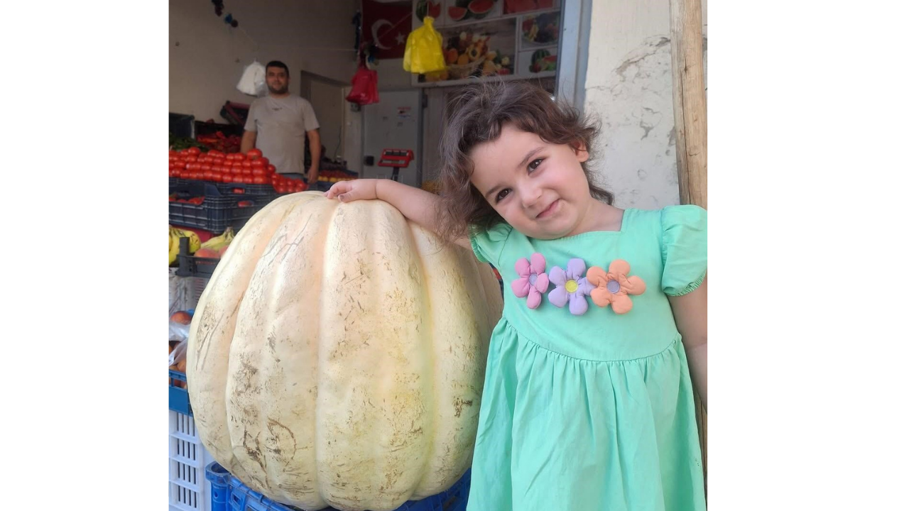 Manisa’nın Sarıgöl ilçesi Alemşahlı Mahallesi’nde yaşayan çiftçi ve manav Hüseyin Cepel, bahçesinde 85 kilogram ağırlığında dev bir bal kabağı yetiştirdi. Cepel, kabakları dükkanına getirerek vatandaşların ilgisine sundu.