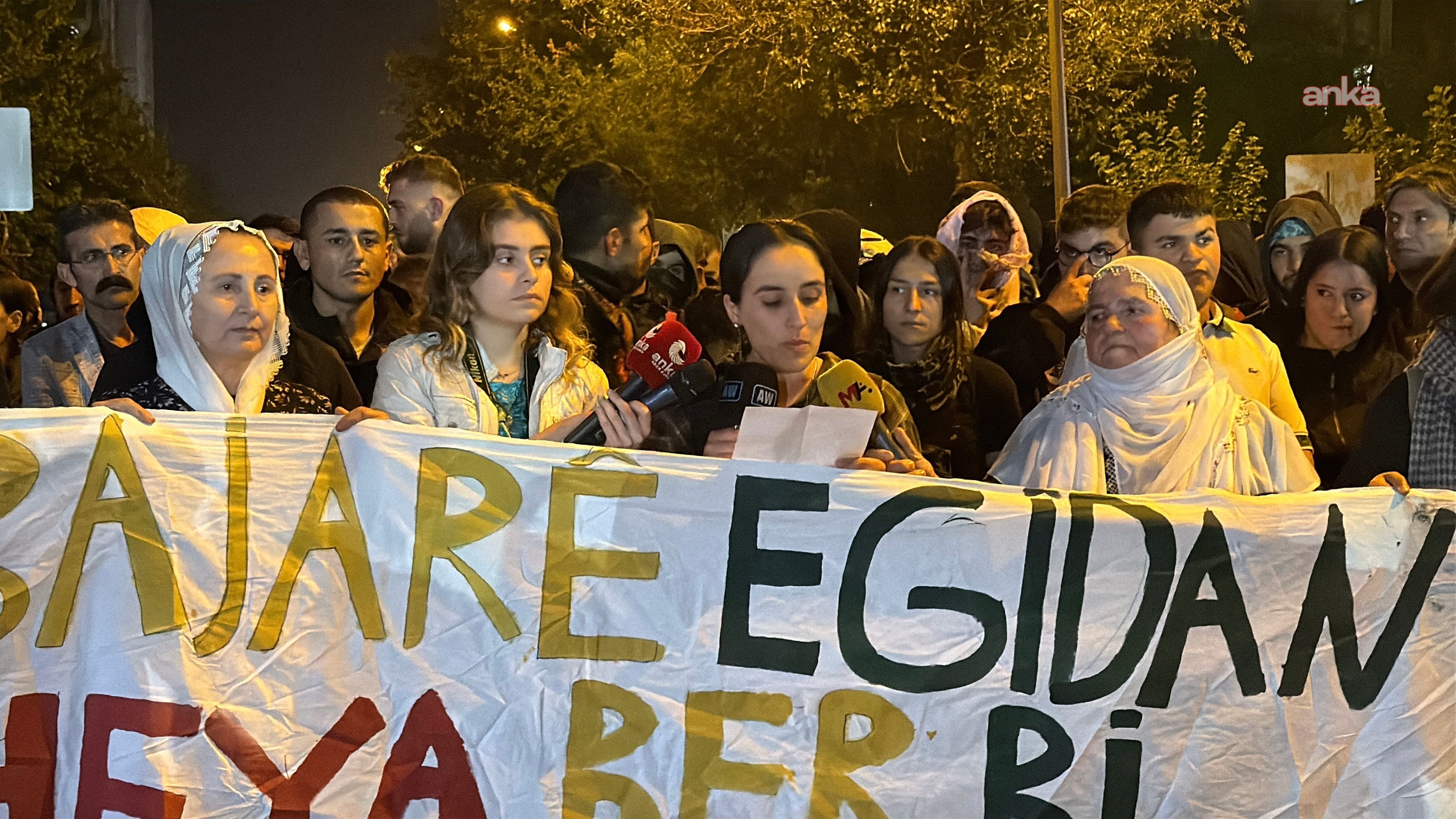 'PKK halktır halk burada' sloganlarının yanı sıra megafon ile 'Arkadaşlar herkes burayı dinleyebilir mi? Herkes sessiz olsun burayı dinlesin. Yoldaşlar, düşman diyor ki eğer yürümeyecekseniz burada yapın. Biz o surlara gideceğiz...'