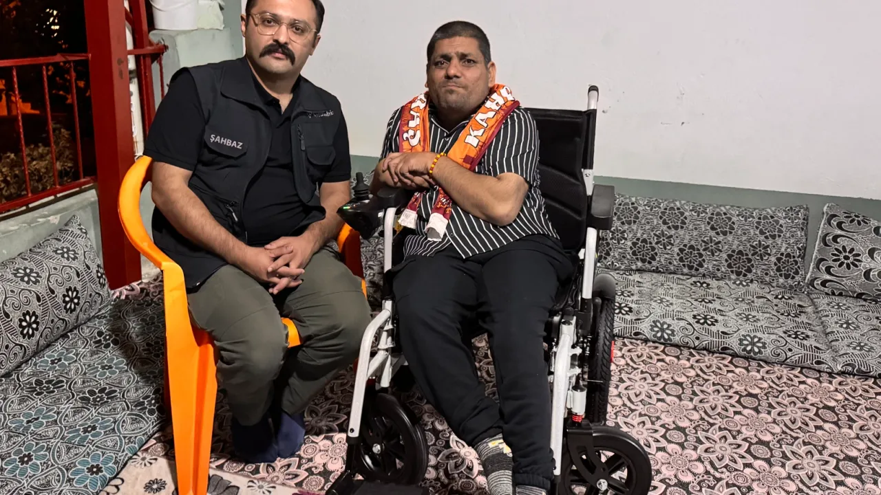 Şahbaz Uluslararası İnsani Yardım ve Arama Kurtarma Derneği, hayırsever polis memuru Mustafa Şahin’in desteğiyle son bir haftada Kahramanmaraş’ta 5 engelli vatandaşı sevindirdikten sonra bu kez Adıyaman’da bir vatandaşa umut oldu.KAHRAMANMARAŞ (İGFA) - Şahbaz Uluslararası İnsani Yardım ve Arama Kurtarma Derneği ekipleri, Gölbaşı ilçesine bağlı Gedikli köyünde yaşayan yüzde 90 engelli Yılmaz’ı ziyaret ederek, “en büyük hayalim” dediği akülü aracını kendisine teslim etti.