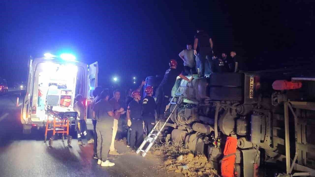 Edinilen bilgiye göre, plakası 34 FAZ olan tır, Tellioğlu tesisleri yakınlarında sürücüsünün direksiyon hakimiyetini kaybetmesi sonucu devrildi. İhbar üzerine olay yerine Karesi Grup Amirliği itfaiye ekipleri sevk edildi. Araçta sıkışan sürücü, ekiplerin müdahalesiyle bulunduğu yerden çıkarıldı.